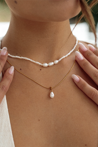 Welcome to the world of dreamy elegance! Let yourself be enchanted by our Summer Romance look, which blends the beauty of bygone times with a touch of modern magic. In the airy linen dress, you'll feel like a muse of past romance, while the delicate pearls and sparkling accents from our Summer Romance Collection envelop you in an enchanting glow. Experience the poetry of summer and feel time standing still when you wear this look.